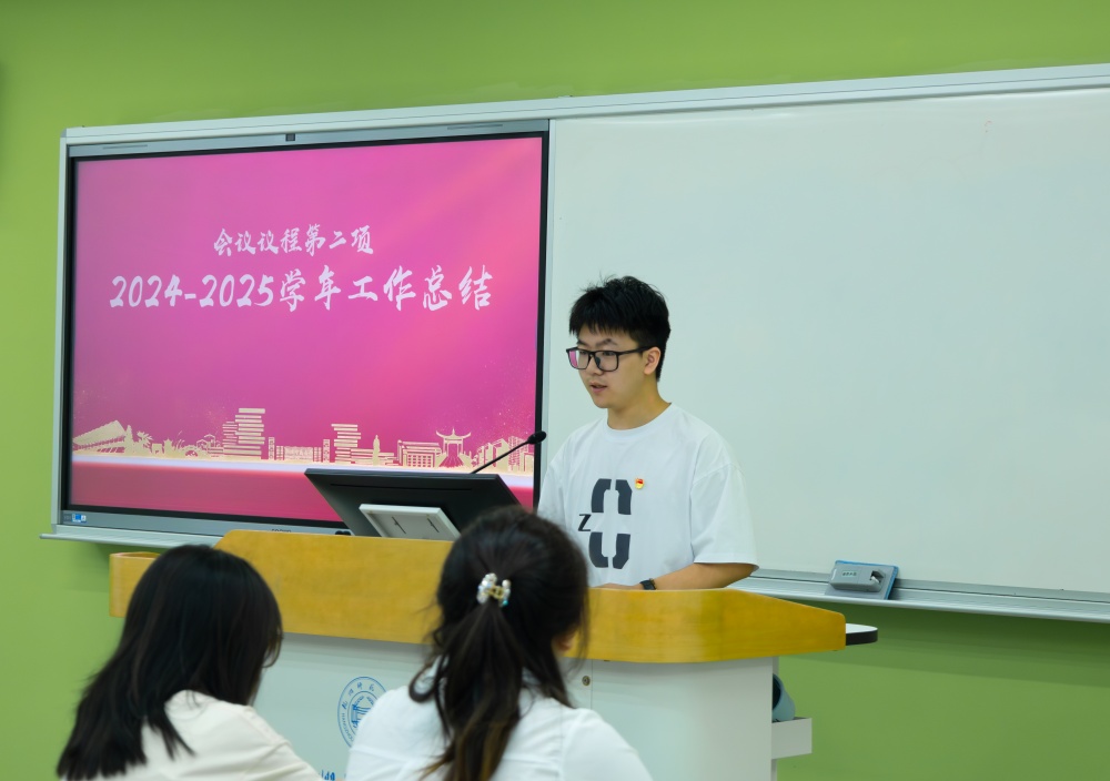 党务中心办公室主任陈松涛代表中心作2024-2025学年工作总结,以详实的工作数据回顾了本学年工作成果,他提到党务中心在学院党总支的正确领导下,党建事务工作的规范化水平不断提升,党员参与活动的积极性、开展活动的主动性不断增强,学院党务中心工作开展顺利。