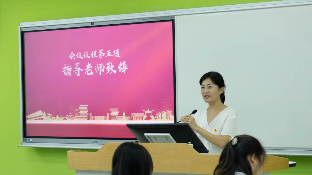 高老师作总结讲话。她对第一届党务中心的工作进行了充分肯定,感谢中心所有成员的辛勤付出。同时,她对新任职干部们提出期许,希望他们发挥团结协作,创新务实的精神,在工作锻炼中收获成长。