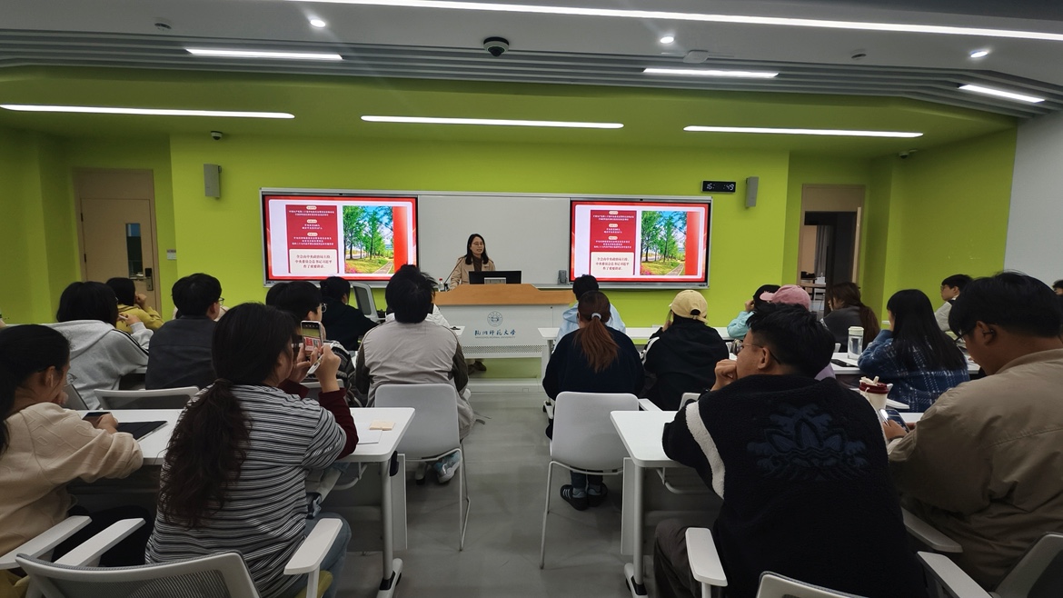 学院党总支副书记应金飞为学员带来《党的二十届四中全会精神解读》专题党课。她首先对参加本次培训的全体学员表示欢迎,并强调了举办入党积极分子培训班的重要意义。随后,她围绕党的二十届四中全会精神,向学员们深刻阐释了全会的主要内容和核心要义,引导学员们深刻领会党中央的重大决策部署,要求大家端正入党动机,坚定理想信念,争取早日成为一名合格的共产党员。